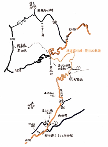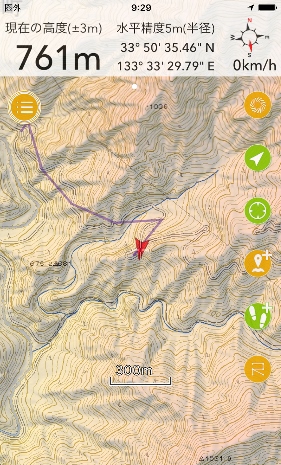 右画像が圏外の林道で 実際に軌跡を記録したものです