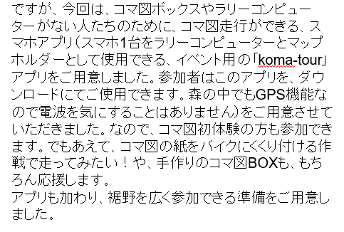 エントリー締め切り後に、別途「koma-tourアプリ」の使い方資料を