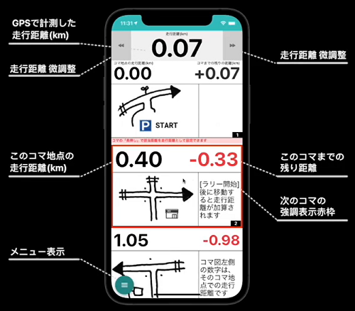コマ図ボックスや距離測定用の機器がない人のために、コマ図走行ができる、スマホアプリもご用意させていただきました。