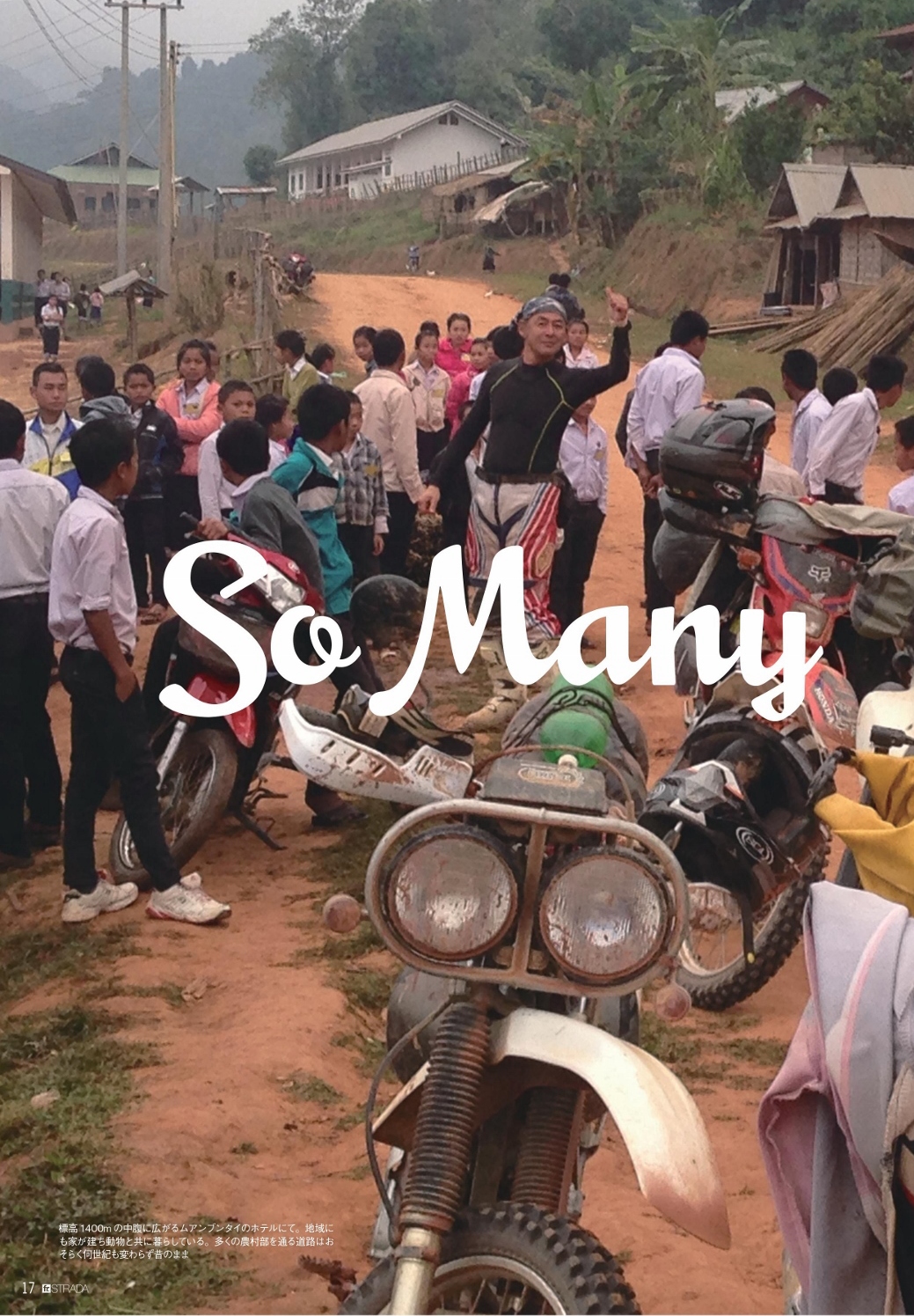 山間になり砂埃が舞う中、東へと山を越えていく。30分も走ればゴーグル跡がクッキリと残るほど全身に砂をかぶった。「これが雨季にはツルツルで、上がりなんかズルズルでチョー大変」と、雨季にツーリンをした3人がマディをまさにパラダイスかのようにニヤリと笑う。私は思わず、笑った。