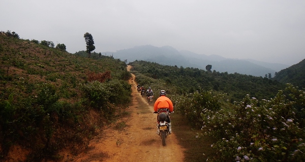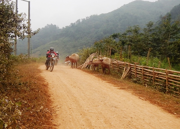 日本の本州ほどの国土を持ち、その約70%が高原や山岳地帯というラオス。大自然を走る冒険のスタートだ。先導のニャイ、私、オーツカさん、ニシオさん、小栗さん、そして写真撮影担当のゴーさんの順番でナムカーン川を渡り、ルアンパバーンを後にする。