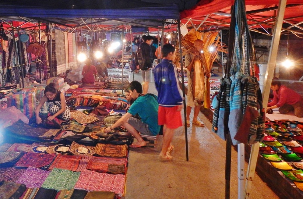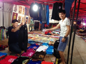 シーサワンウォン通りは歩行者天国となり、一大ナイトマーケットに変身。観光客で溢れている。私はここで貝殻が施された木製のお箸10膳と、紙すきのランプシェードを買った。