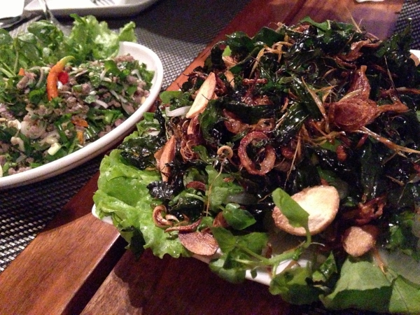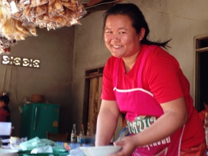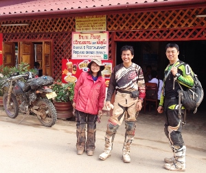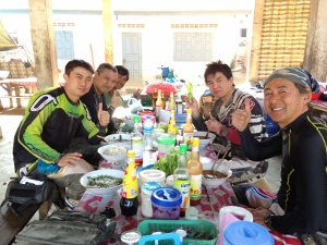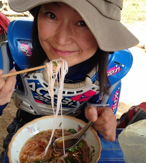 ランチはこの街のカンニャ・レストランで、ラオス料理とタイ料理のスープや麺や炒め物をシェアした。ツーリング中の食事はフーが定番だったこともあり、ボリュームあり、パンチあり、味ヨシのご馳走に大満足だ!