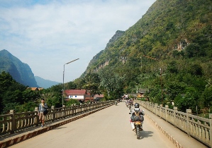 ナムウー川と国道1号のジャンクションに位置するノーンキャウの町に出た。峡谷が素晴らしいナムウー川には近代的な大きい橋が架かっていて、密林を走ってきた私たちは、この橋が見えた瞬間ホッとした。
