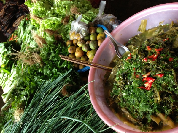 やがて国道1号線に出て左折。しばらく走り、村の市場でランチ。新鮮な野菜や、魚の中に香草などを入れ発酵させた食べ物もあって鼻にツンとくる。