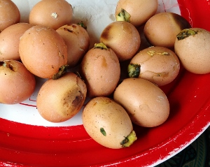 鶏やアヒルは放し飼いで、子供たちはケンケンパーや、(薬莢に鶏の羽をさして作った)羽と長方形の木の板で羽根付きをして遊んでいる。どこか昭和の面影がある長閑な風情がいい。