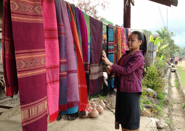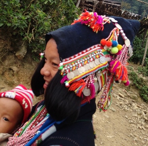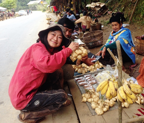 2人を見送った後、町の中心にある市場に行く。東南アジアの雑踏感を感させる市場には、周辺の村からも美しいヘッドドレスを高く結い上げた髪の少数民族の女性たちも買い出しに訪れていた。ちょっと緊張気味な表情で街を歩く姿が微笑ましい。