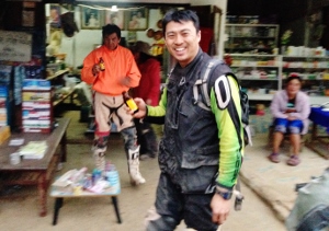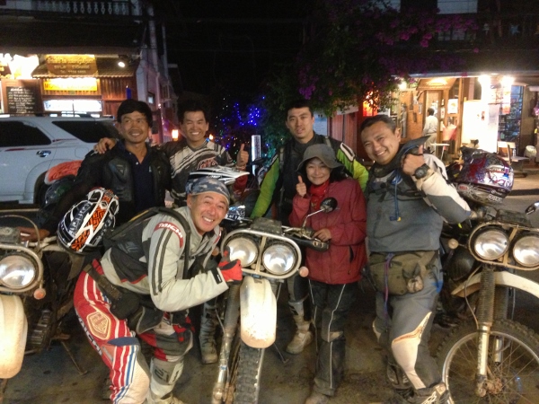 テンションも上がり、ルアンパパーンまで5時間ほどの道のりを、明るいうちにゴールを目指し飛ばす。結局パンクしたりで陽が沈み、猛烈に明るいライトを持つホンダXR250BAJA2台を最後尾と真中にしてルアンパバーンへ向かった。