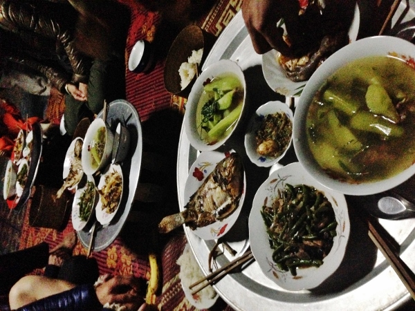 だが、不安はしばらくすると解消した。ラオスのシャーマンに来客である私たちの健康と旅の安全を唱えてくれたそうだ。それは、ラオスの日常生活に存在する精霊信仰の体験だった。その流れでリアルなラオスフードをご馳走になると、私は心が潤うのを感じた。