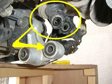 ※赤丸のボルトが、リヤサス上部の固定ボルト |