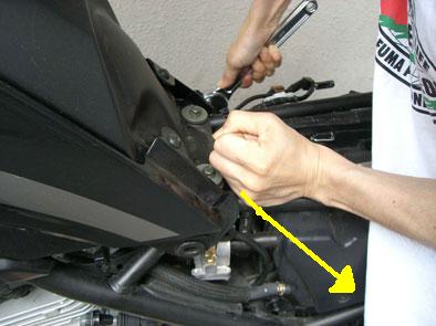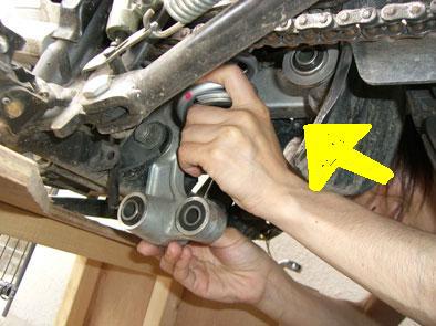 5.リヤサスを取り外します。 左手のスパナで→ ![]() |