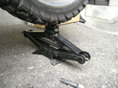11.ジャッキにて、リヤタイヤを持ち上げます。 ※力を使わないので楽チン!