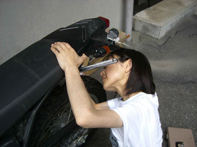 私のセロー250にローダウンキットを組付けました (ここでは、リアサス交換とスタンド交換です) |